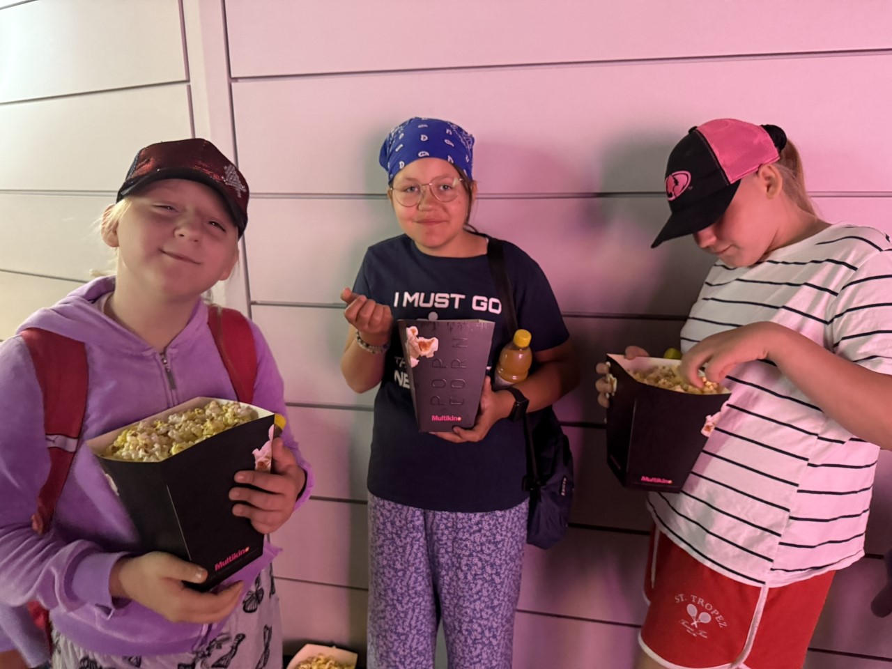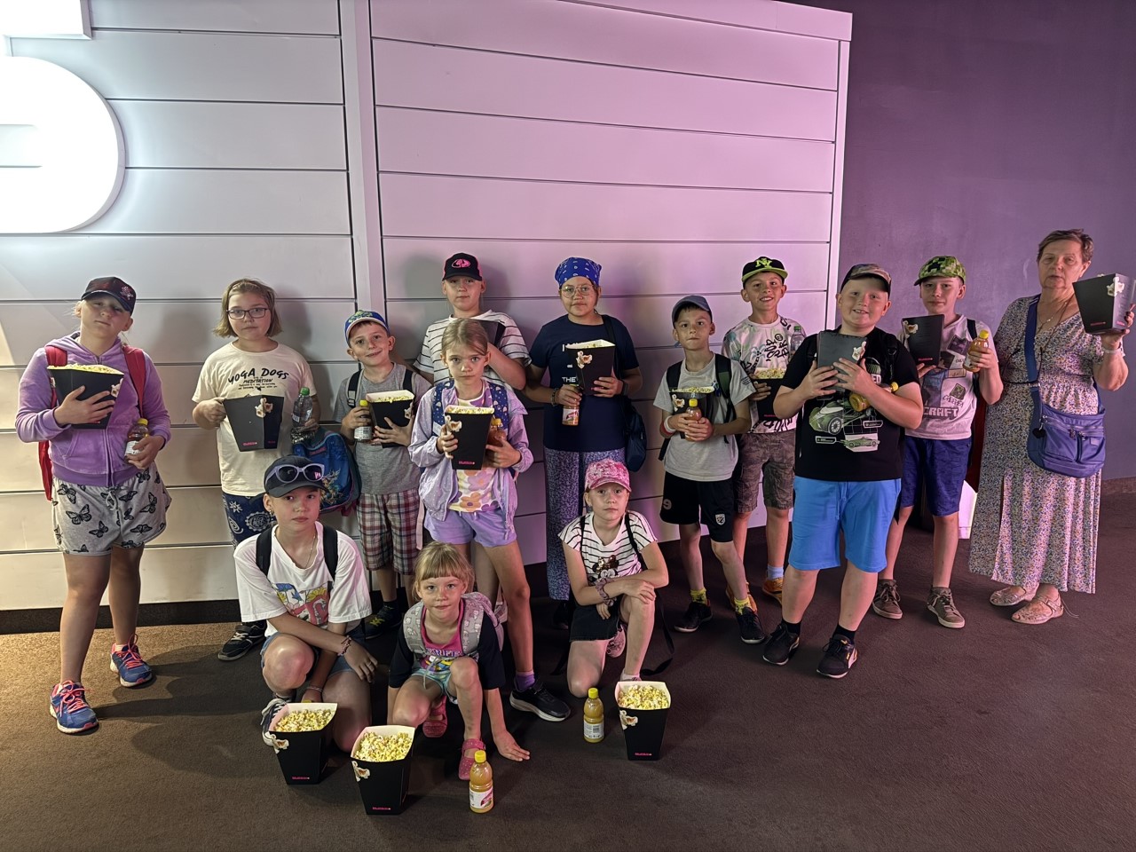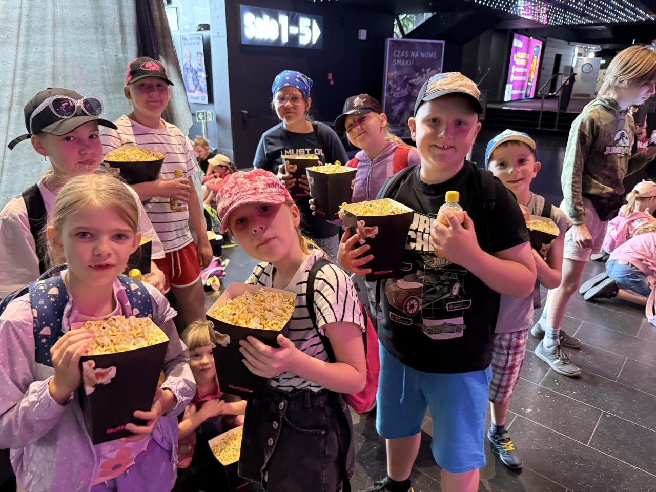 Ostatni dzień pierwszego tygodnia naszej akcji letniej spędziliśmy na wyjątkowym wyjściu do Multikina Targówek. Tam obejrzeliśmy wspólnie film „Jak wytresować smoka”. To pełna przygód i wzruszeń animacja opowiadająca o młodym wikingu Czkawce, który żyje w świecie, gdzie smoki są uważane za wrogów. Wszystko zmienia się, gdy chłopiec spotyka i zaprzyjaźnia się z jednym z nich – wyjątkowym smokiem o imieniu Szczerbatek. Ta niezwykła przyjaźń uczy dzieci empatii, odwagi i przełamywania uprzedzeń. Film zachwyca piękną animacją, humorem i ważnym przesłaniem o sile zaufania i współpracy, który bardzo podobał się dzieciom. Każdy uczestnik otrzymał popcorn, dzięki czemu seans był jeszcze przyjemniejszy.