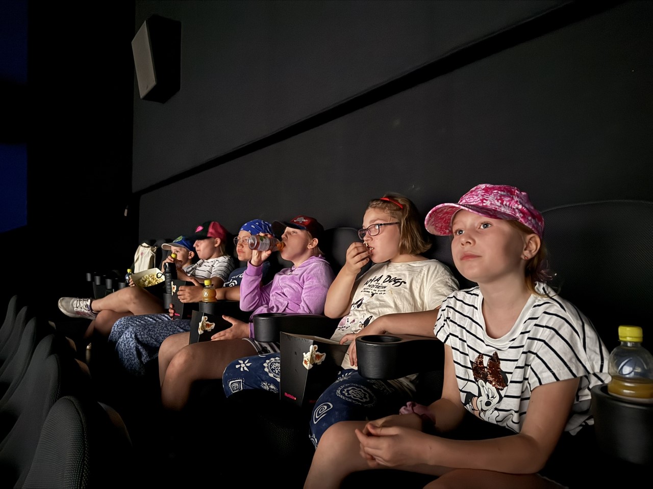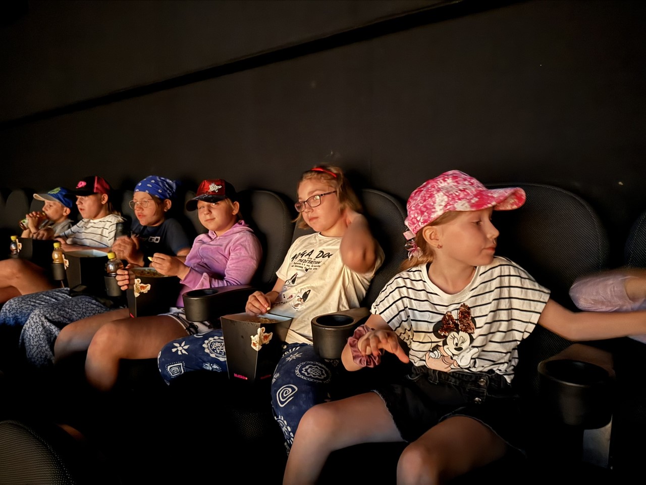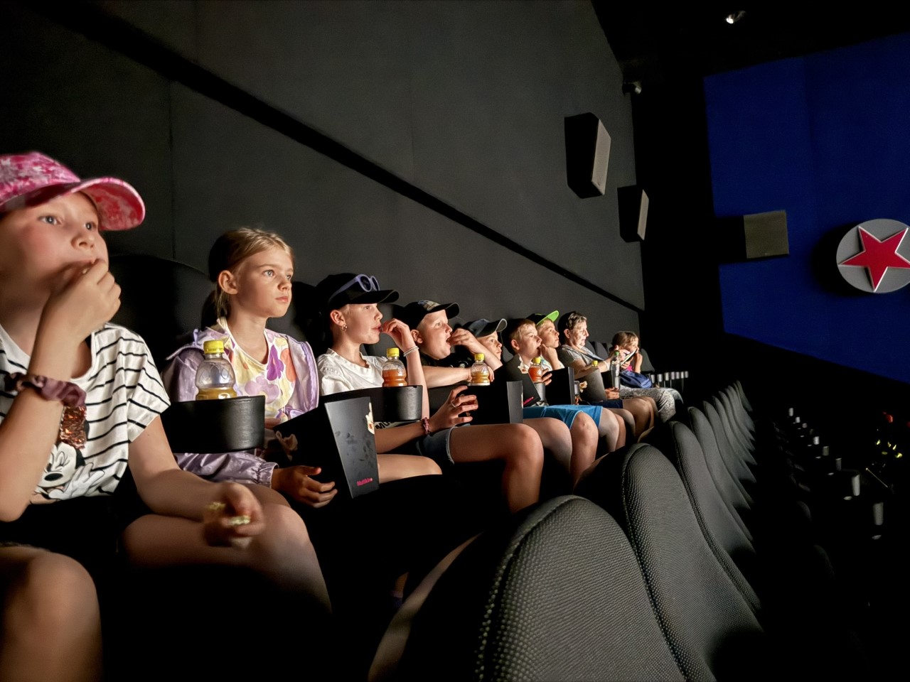 Ostatni dzień pierwszego tygodnia naszej akcji letniej spędziliśmy na wyjątkowym wyjściu do Multikina Targówek. Tam obejrzeliśmy wspólnie film „Jak wytresować smoka”. To pełna przygód i wzruszeń animacja opowiadająca o młodym wikingu Czkawce, który żyje w świecie, gdzie smoki są uważane za wrogów. Wszystko zmienia się, gdy chłopiec spotyka i zaprzyjaźnia się z jednym z nich – wyjątkowym smokiem o imieniu Szczerbatek. Ta niezwykła przyjaźń uczy dzieci empatii, odwagi i przełamywania uprzedzeń. Film zachwyca piękną animacją, humorem i ważnym przesłaniem o sile zaufania i współpracy, który bardzo podobał się dzieciom. Każdy uczestnik otrzymał popcorn, dzięki czemu seans był jeszcze przyjemniejszy.