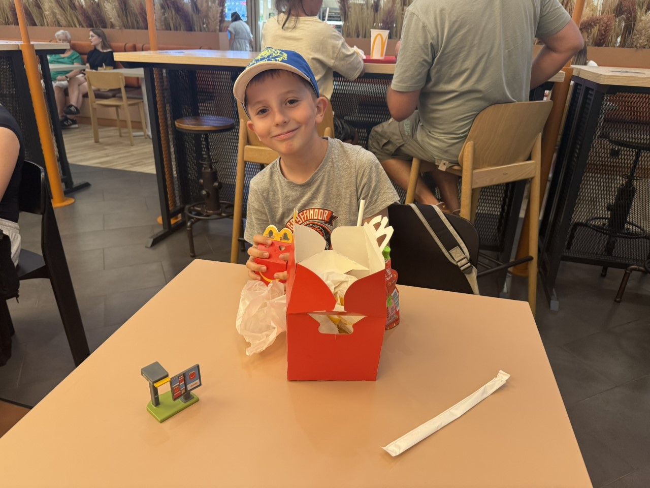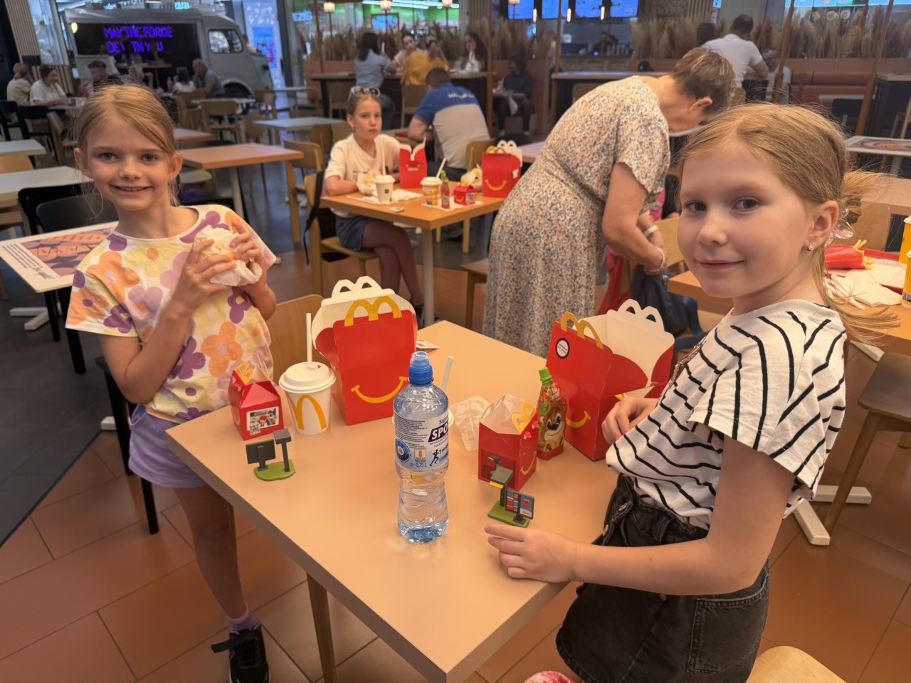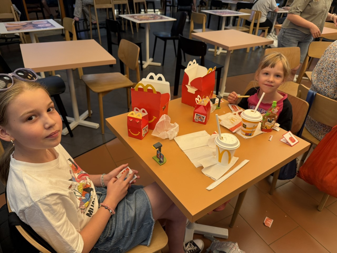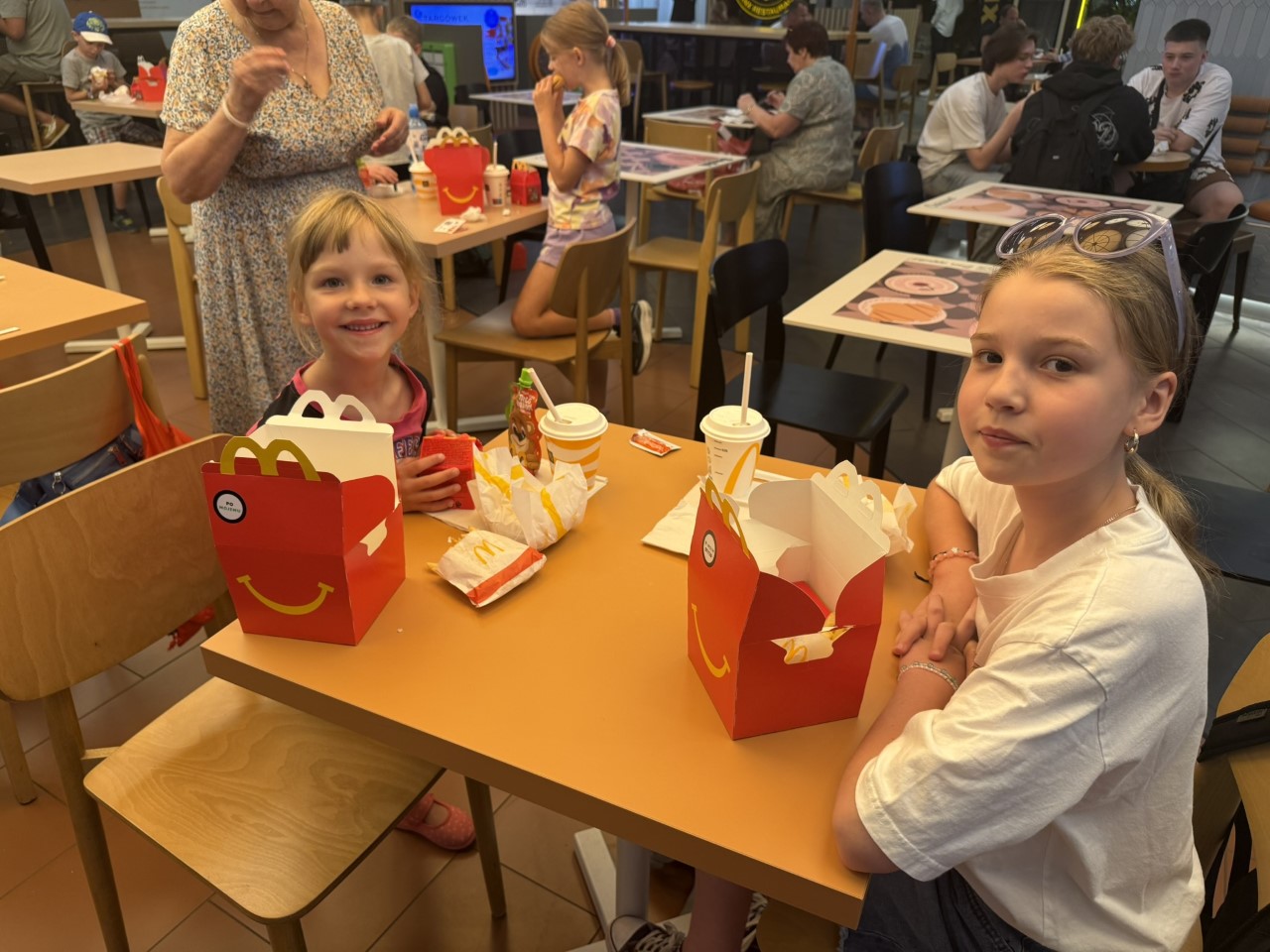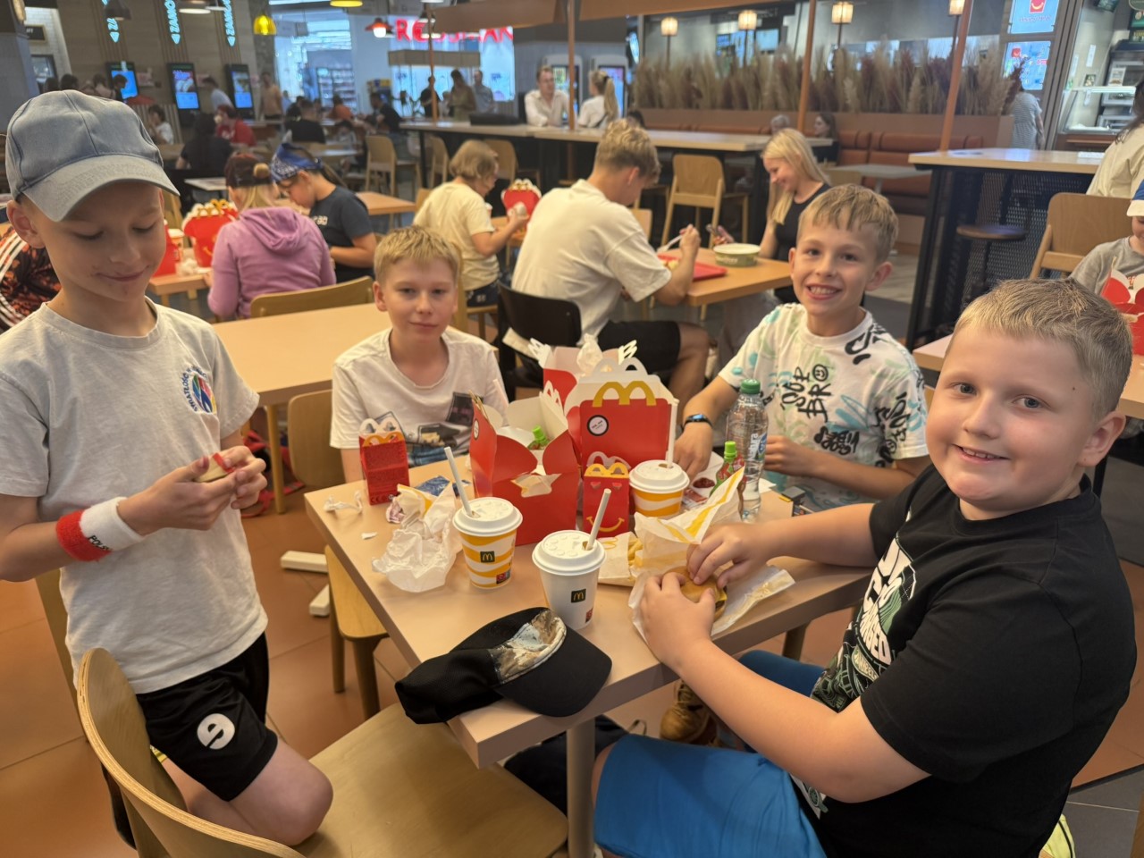 Po filmie, z okazji zakończenia wspólnego tygodnia, udaliśmy się do McDonald’s. Była to nagroda za wzorowe zachowanie, aktywny udział w zajęciach i ogromne zaangażowanie dzieci przez wszystkie dni. Uśmiechy na twarzach uczestników były najlepszym dowodem na to, że ten tydzień był pełen wrażeń, radości i dobrej zabawy. Teraz już czekamy na kolejny tydzień oraz na rysunki dzieci z minionego tygodnia 🙂
