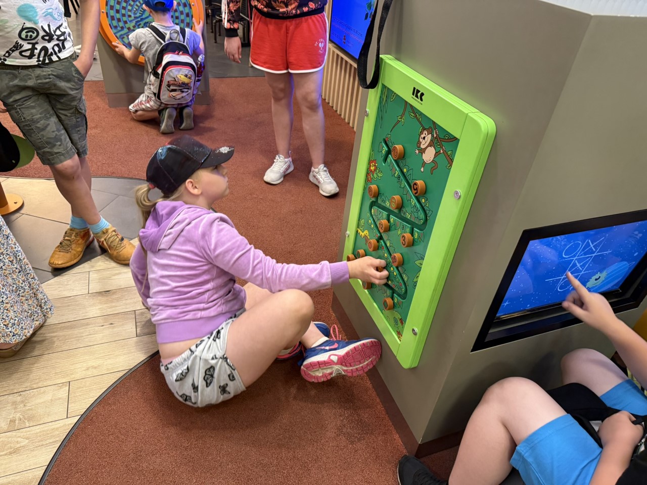 Naszą przygodę drugiego dnia rozpoczęliśmy na Górce Szczęśliwickiej, gdzie czekała na nas kolejka grawitacyjna. Radości nie było końca – każdemu udało się zjechać kilka razy, a emocje rosły z każdym kolejnym przejazdem! Podczas zjazdów mogliśmy podziwiać piękno natury oraz panoramę miasta. Po dawce adrenaliny przenieśliśmy się do pobliskiego parku Szczęśliwickiego, gdzie dzieci mogły wyszaleć się na placu zabaw. Były wspinaczki, zjeżdżalnie, huśtawki i mnóstwo śmiechu.