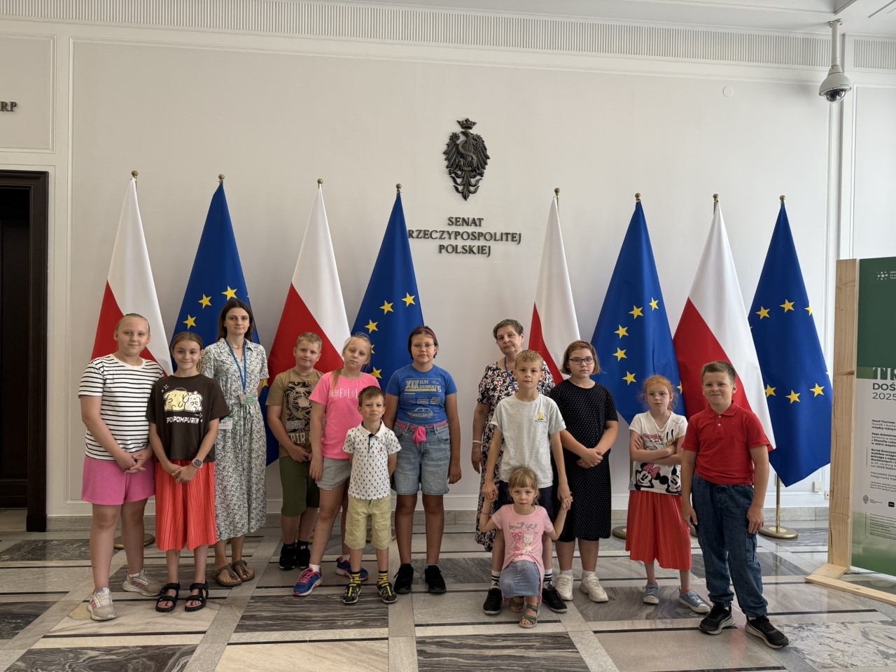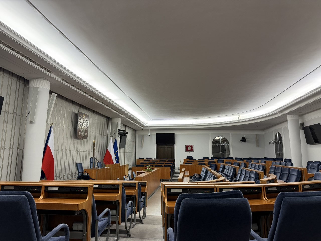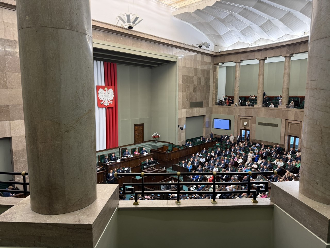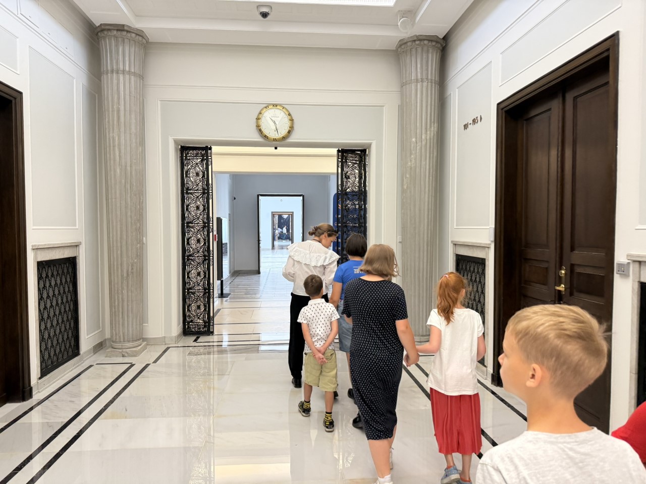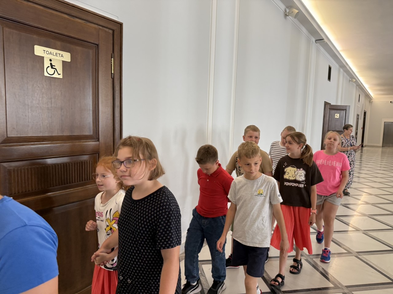 Następnie przeszliśmy do Sejmu, gdzie – ku naszej ogromnej radości – trafiliśmy na trwające obrady! Z galerii mogliśmy na żywo obserwować przemówienia znanych osób. Było to niesamowite doświadczenie – zobaczyć z bliska, jak wyglądają obrady i poczuć atmosferę tego ważnego miejsca. Byliśmy pod dużym wrażeniem – niektórym udało się rozpoznać posłów i posłanki, których możemy widywać w telewizji.