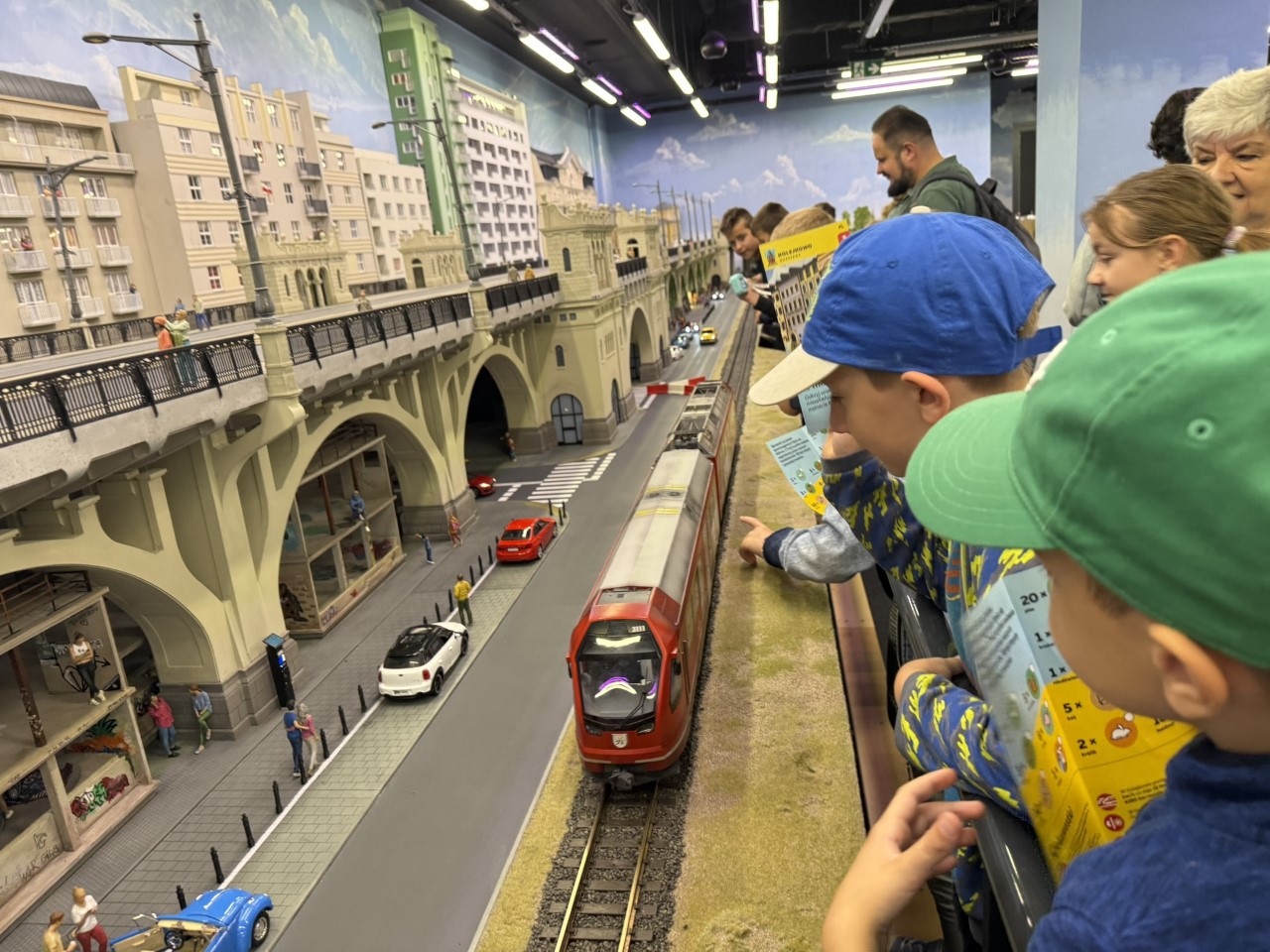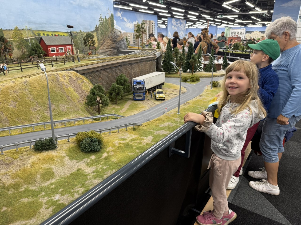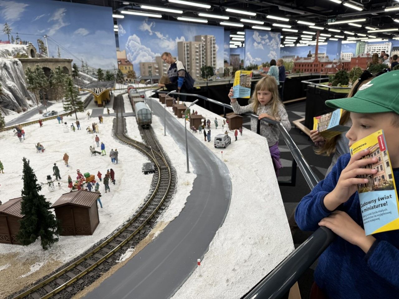 Ze względu na niesprzyjającą pogodę musieliśmy zmienić nasze plany zamiast zabawę na świeżym powietrzu wybraliśmy zwiedzanie wystawy Kolejkowo. To największa w Polsce wystawa makiet kolejowych, gdzie codzienne życie toczy się w skali 1:25 — z pociągami, tramwajami, samochodami, a nawet statkami i samolotami.