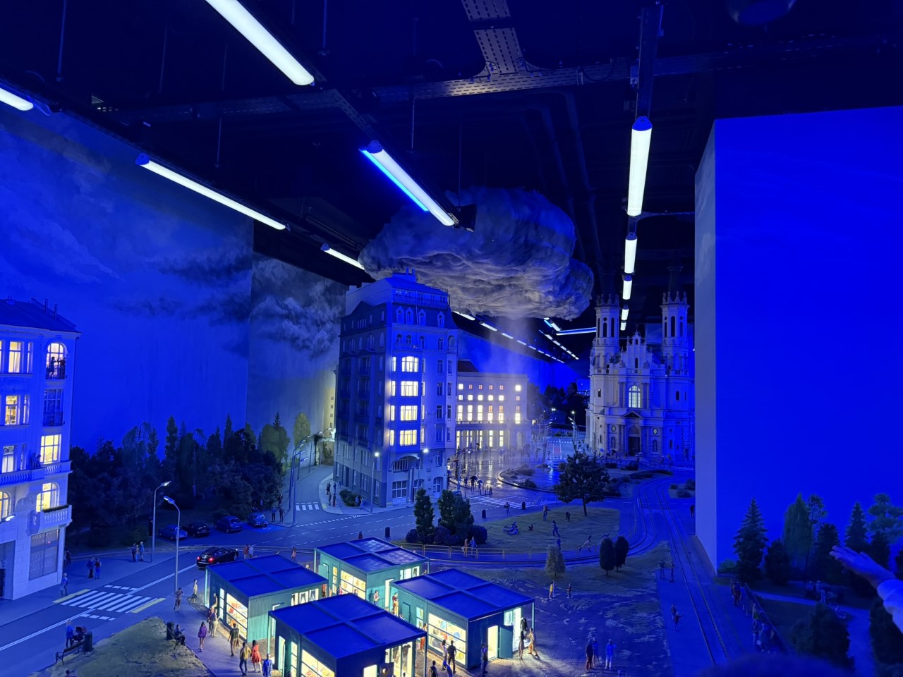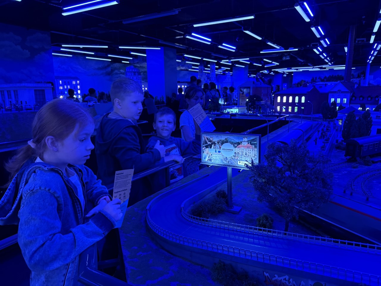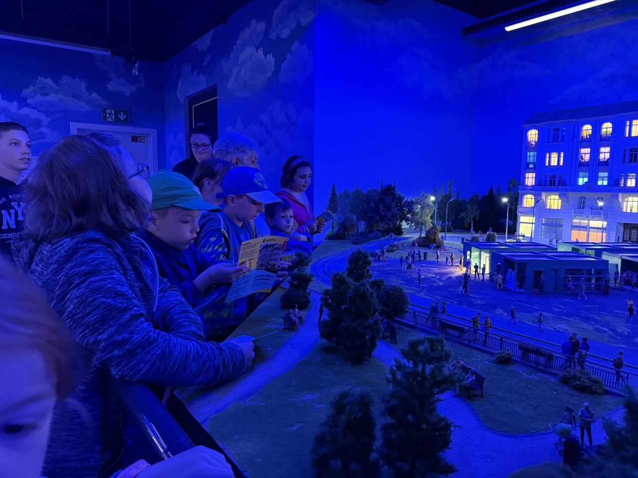 Ze względu na niesprzyjającą pogodę musieliśmy zmienić nasze plany zamiast zabawę na świeżym powietrzu wybraliśmy zwiedzanie wystawy Kolejkowo. To największa w Polsce wystawa makiet kolejowych, gdzie codzienne życie toczy się w skali 1:25 — z pociągami, tramwajami, samochodami, a nawet statkami i samolotami.